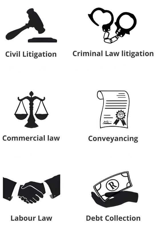 We have built a formidable reputation for our robust expertise in Civil Litigation, Commercial Law, and Conveyancing. Because of our strategic location and expansive capabilities, our team can efficiently litigate directly in the Roodepoort, Krugersdorp, Randfontein, and Kagiso Magistrates and Regional Courts without needing to utilize a correspondent firm.